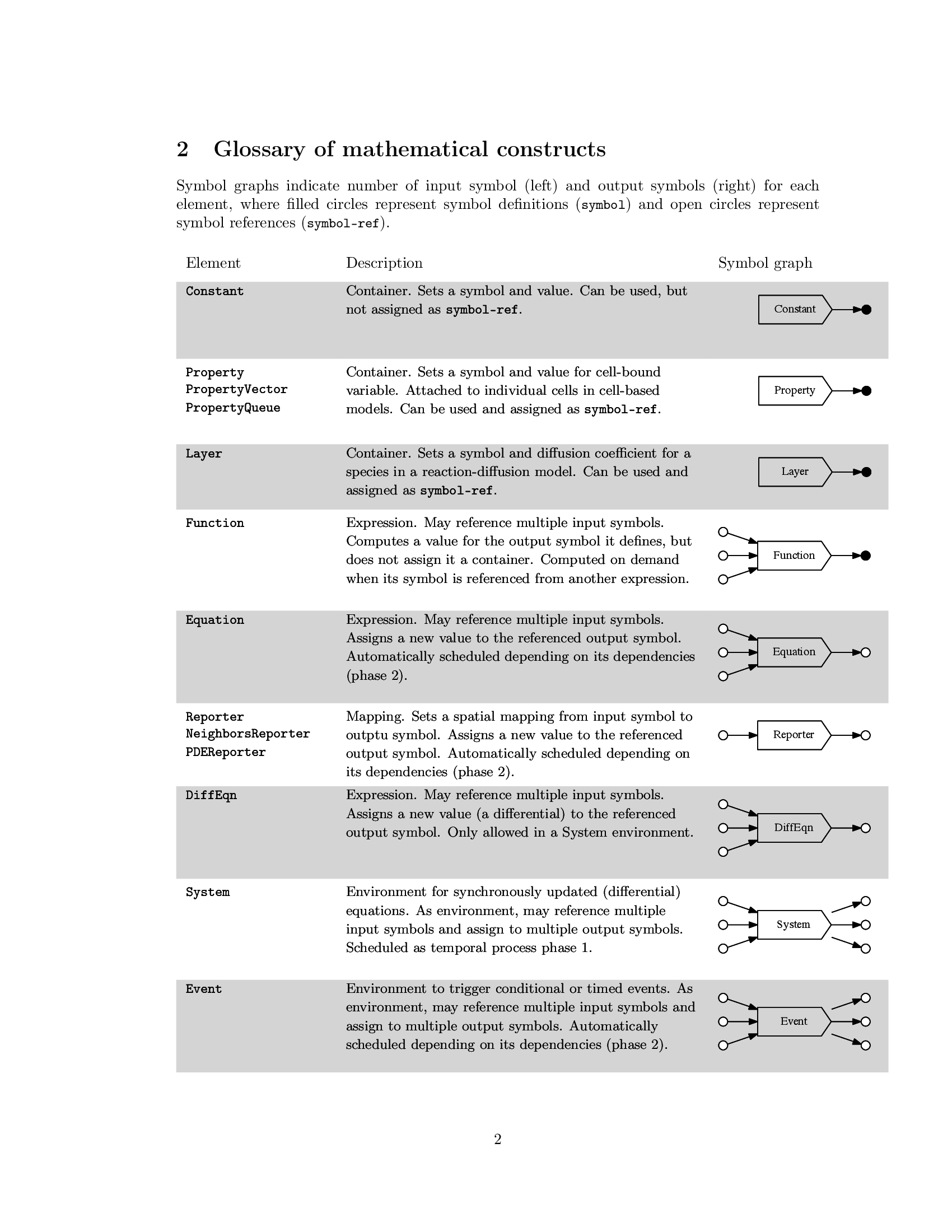 A glossary of the available mathematical constructs included in the Morpheus model description language is included in section [sec:Glossary-of-main].