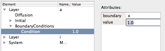 When using constant boundary conditions, values used at the boundary of a reaction-diffusion model can be specified in PDE → Layer → BoundaryConditions. Assuming nonzero diffusion, this causes a constant influx (or efflux) from (at) that boundary. The default value is $0.0$.