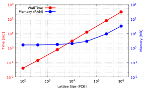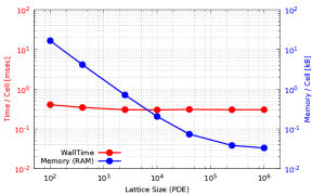 - Relative terms: time / memory per cell/lattice site in millisecond (msec) / kilobyte (kB).