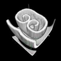 To visualize the resulting scrolling waves in 3D, the TiffPlotter is used. This Analysis plugin writes TIFF image stacks that cam be opened by image analysis software such as Fiji/ImageJ. To import Morpheus TIFF images into Fiji, macros scripts are available that help you to create 3D (xyz), 4D (xyzt) or even 5D (xyzct) images and movies of your simulations.